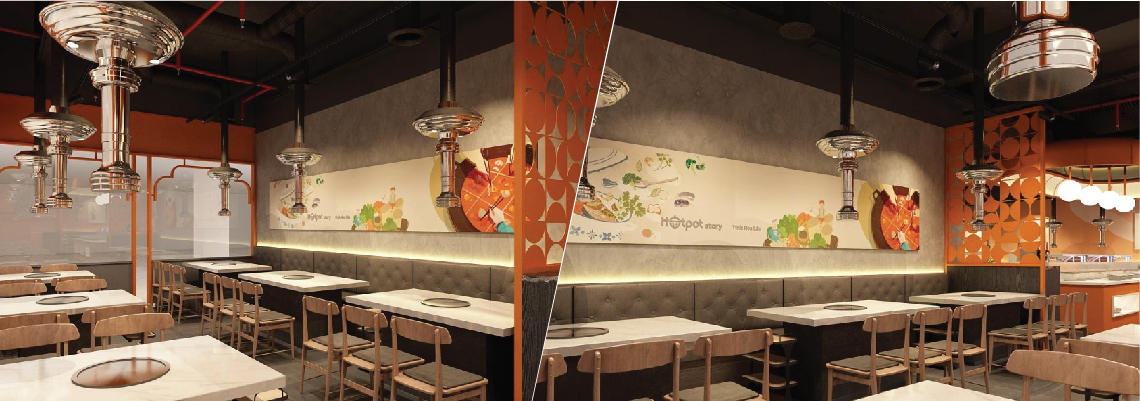 HOTPOT RESTAURANT LOCATION: VINCOM LE VAN VIET YEAR: 2019 ITEMS: FIITING OUT, INTERIOR, FURNITURE, MEP