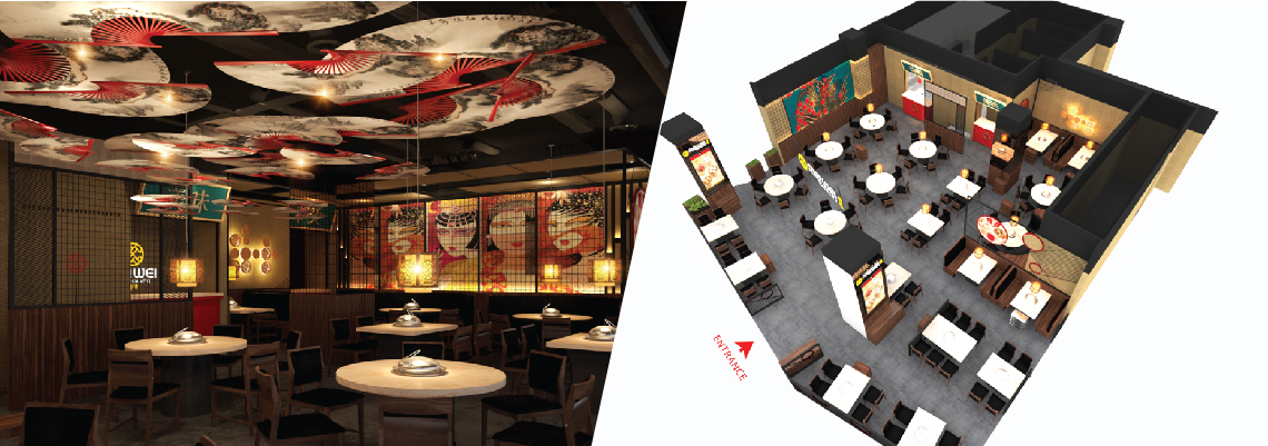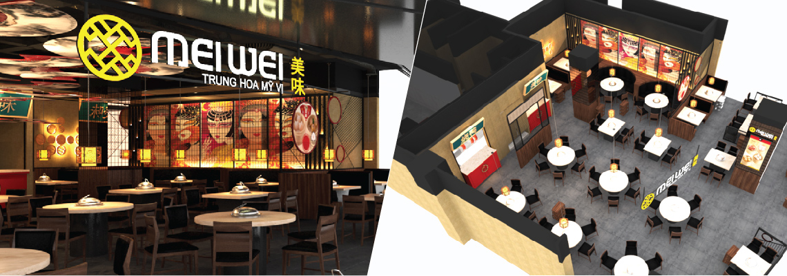 MEIWEI – CHINESE RESTAURANT LOCATION: AEON HA DONG YEAR: 2019 S: 297 M2 ITEMS: FIITING OUT, INTERIOR, FURNITURE, MEP