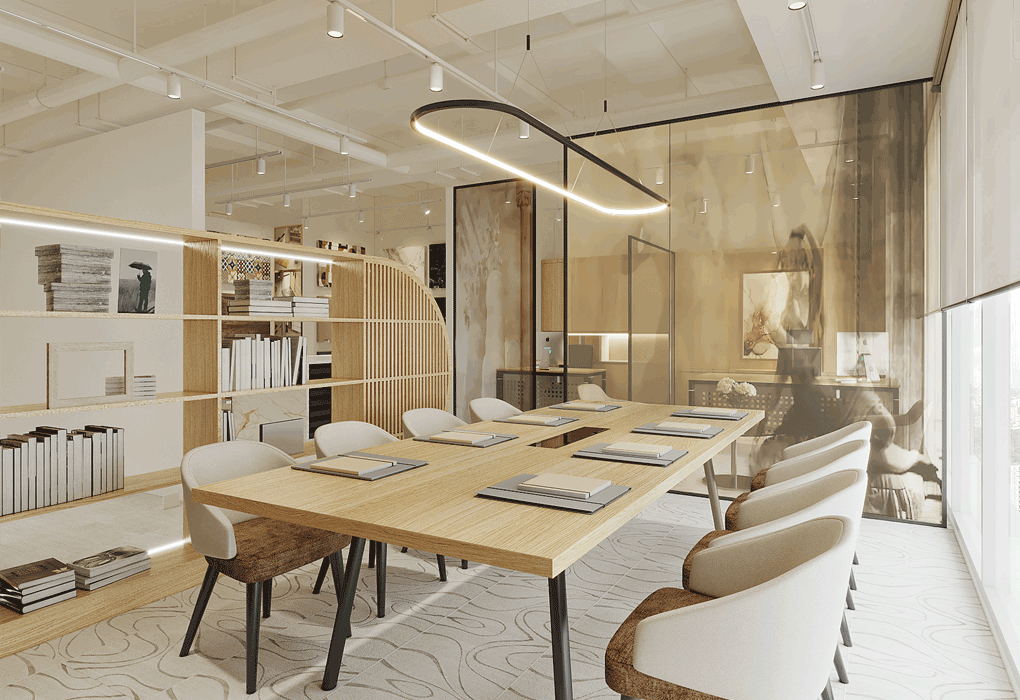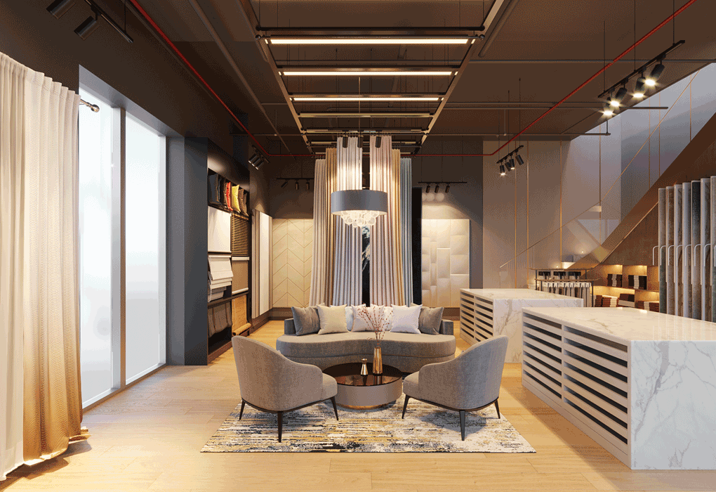 Showroom and office: Material for construction and interior S: 320m2 Owner: Trend Decor from China Location: Nguyen Co Thach – Sala – Distric 2 Finish: 12.2021 Design: Trend Decor Constructor: TTS